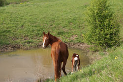 Grande jument au modèle porteur, fille de notre étalon espagnol, Ibério et de Pirouette, ancienne poulinière à l'élevage à présent vendue.